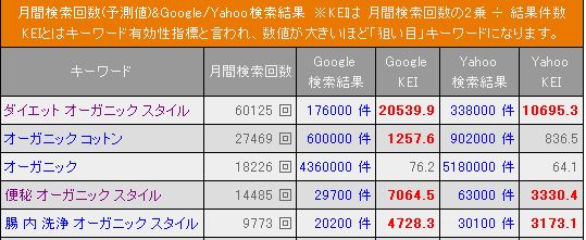 - Google KEI値:20539 Yahoo KEI値:10695